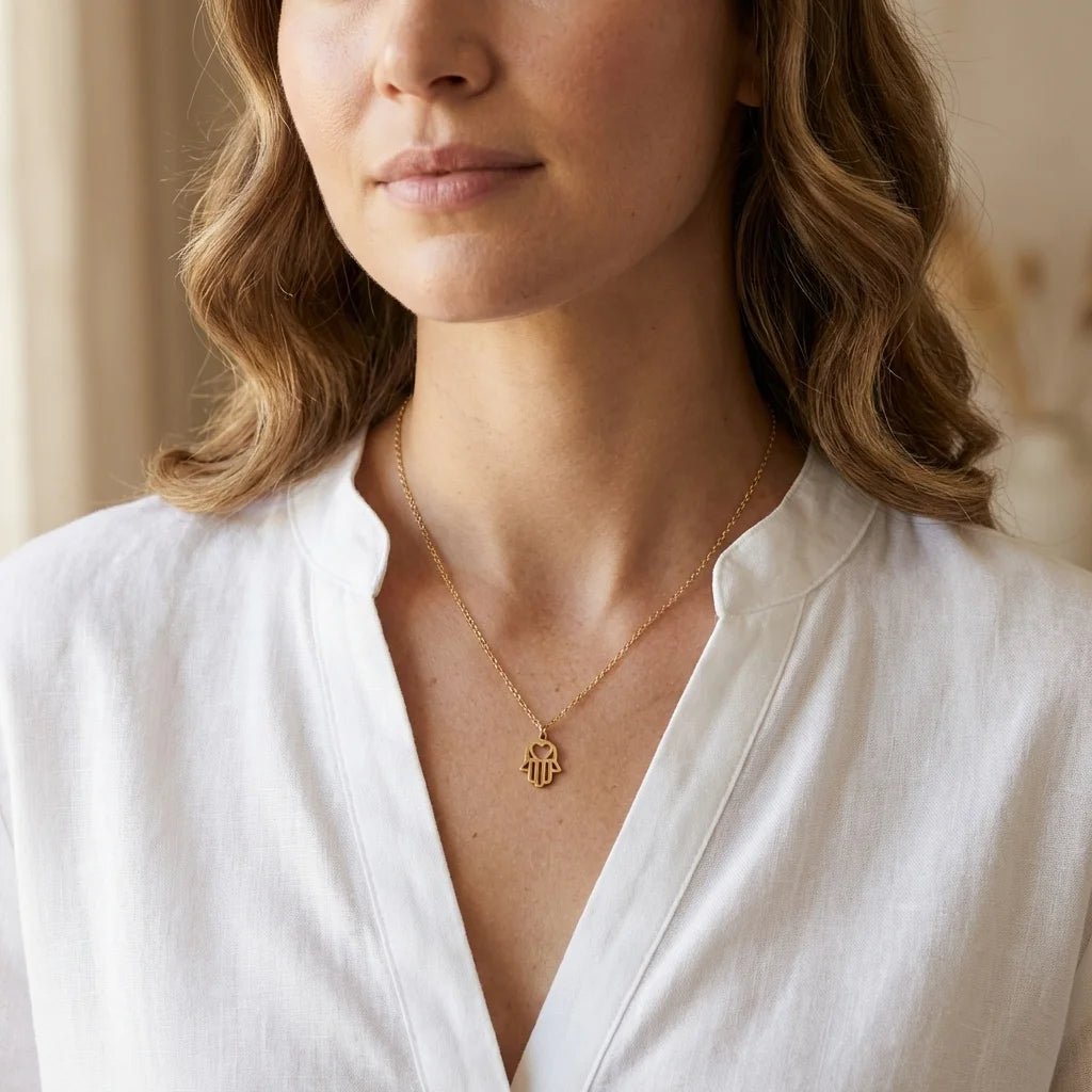 Discover everyday elegance with our Essential Chain. This minimalist necklace features a delicate palm pendant that symbolizes protection, peace, and spiritual connection, making it a meaningful addition to your daily jewelry rotation.